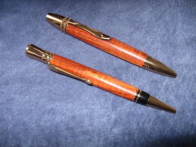 These pens are made from cocobolo wood, the bottom pens in refered to as " Executive pen",and the pen above is "Polaris" style pen. Both of these have the twist mechanisms
